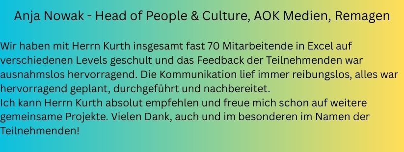 Ich habe in mehr als 20 Jahren viele Unternehmen beraten und Mitarbeiter geschult. Mit mehr als 1000 Mitarbeitern aus Unternehmen haben wir Lösungen für Microsoft erarbeitet.
